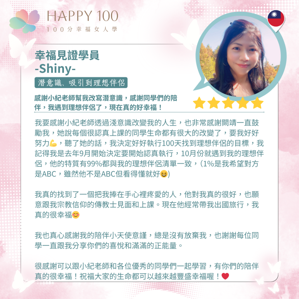 在參與《100分幸福女人學》課程,以及 21 天鏡子練習後,